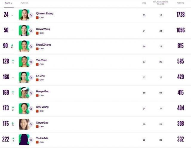 郑钦文的世界排名是极速下滑了。